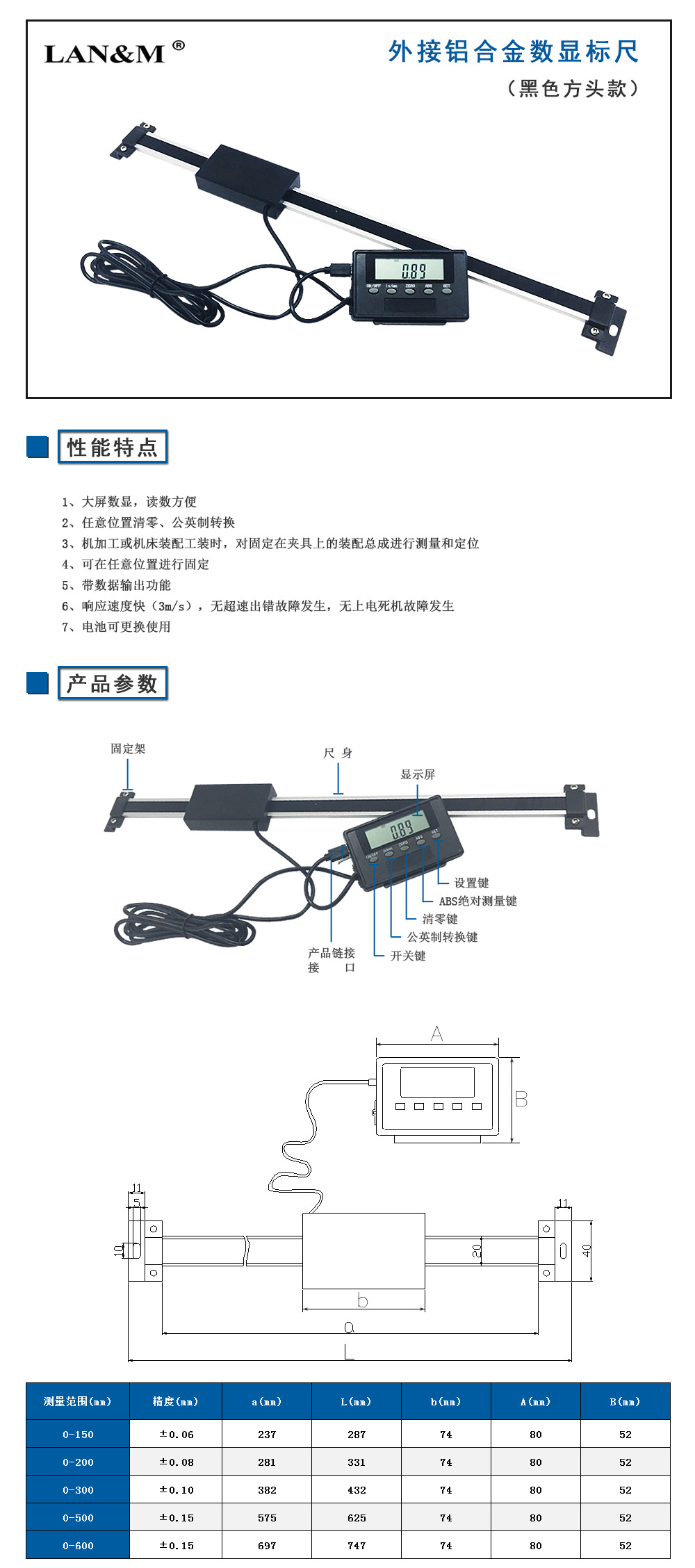 鋁合金數顯標尺銀色圓頭款(kuǎn)