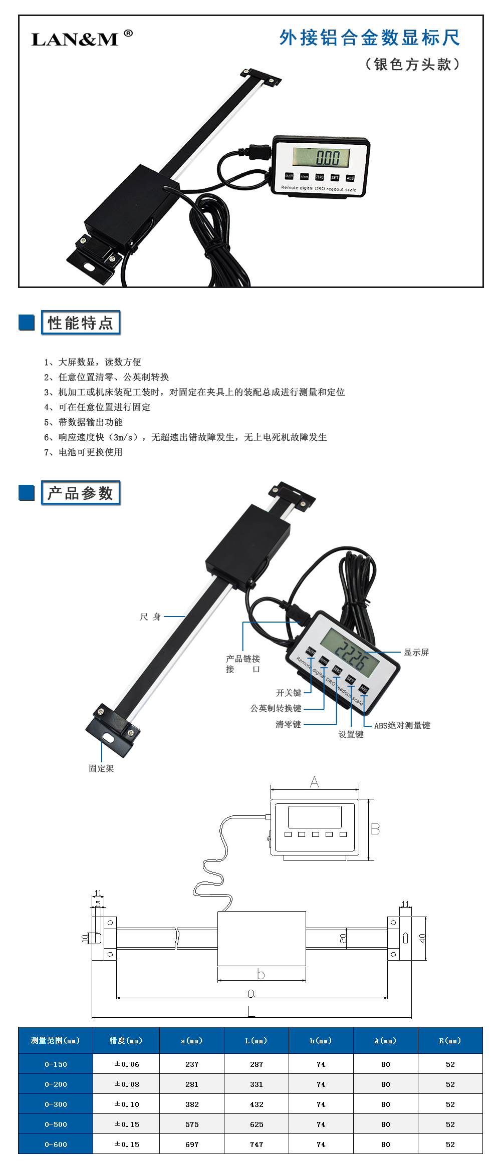 鋁合金數顯標(biāo)尺黑色方頭款