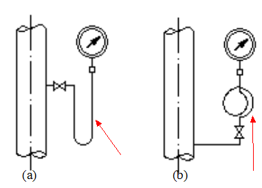 6.當檢測溫度高於 60℃的液體、蒸汽和可凝性氣(qì)體的壓力時,就地安(ān)裝的壓力表 的取源部件應帶有環(huán)型(xíng)或 U 型冷凝彎。