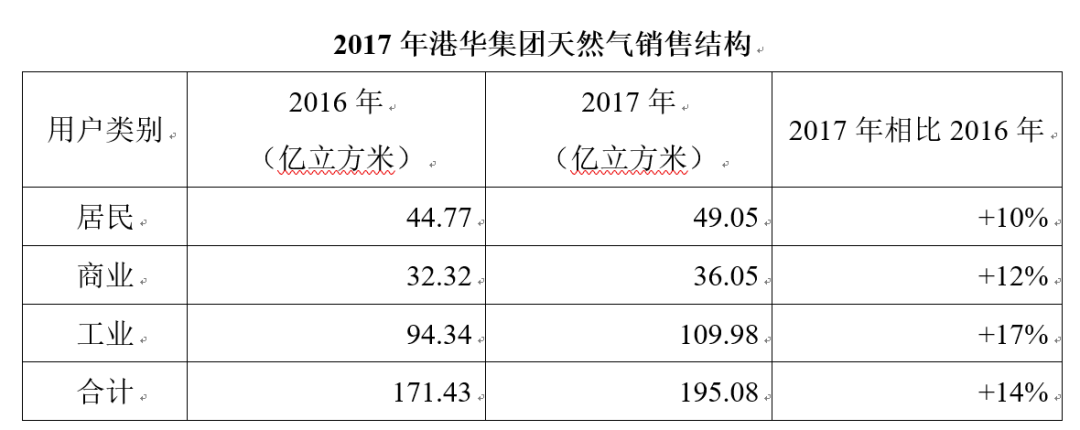 2017年,港華集團工業用氣量占比56%,商業用氣占比19%,居民用氣占比25%。工、商業“煤改氣”方(fāng)麵相關情況如下: