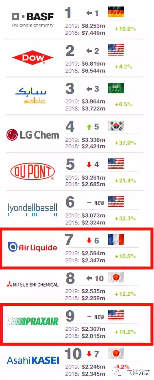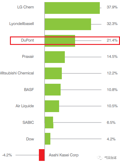 登上10強榜單的還有:陶氏杜邦(DowDuPont),沙特基(jī)礎工業公司(SABIC),樂金化學(xué)(LG Chem),利安德巴塞爾工業公司(Lyondellbasell),日本三菱化學(MITSUBISHI Chemical),日本旭化成(chéng)(AsahiKASEI)。