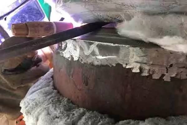 整體充氬的方法(fǎ)是:將兩端用膠帶 (紙殼、橡膠板等)封(fēng)口,由管子的一端充入氬氣,另一端封口上部打上(shàng)一個3~5mm的排放孔,主要(yào)是防止(zhǐ)收弧(hú)時管(guǎn)內氬(yà)氣壓力過大,造成接頭收弧困難,產生凹坑等缺陷。