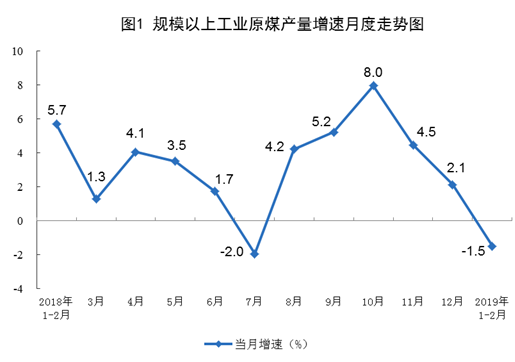 1-2月份,原煤(méi)生產同比下降1.5%,上年12月增長2.1%,增(zēng)速由正轉負;生產原煤5.1億噸,日(rì)均產量871萬噸。