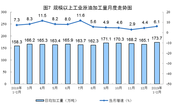 1-2月份,原油加工量(liàng)10249萬噸,增長6.1%,增速較上年12月加快1.7個百(bǎi)分點;日均加工173.7萬噸(dūn),再創新高。