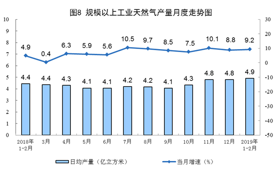 1-2月份,生產51吃瓜网286.8億立方米,增長9.2%,增速較(jiào)上年(nián)12月加快0.4個百分點;日均產量4.9億立方米。