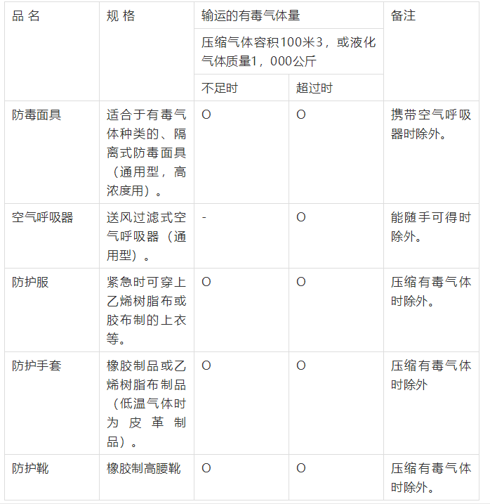 防護用具列於下表。攜帶數量相(xiàng)當於該車輛乘(chéng)務員人數(shù)。