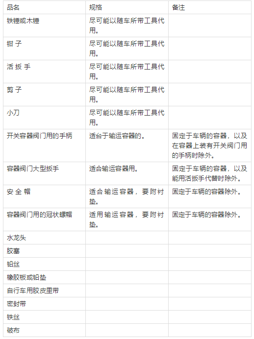 工具列於下表。轄運可燃、有(yǒu)毒氣體時,采用防爆(bào)工具。