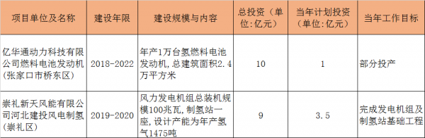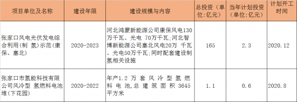 值得一提(tí)的是,張家(jiā)口的氫能(néng)產業還在持續壯大中。2020年(nián),當地有4個氫能與燃料電池項(xiàng)目被列入《河北省2020年省重點項目計劃(huá)》。其中2個是計劃開工項目,另兩個是續建項(xiàng)目,項(xiàng)目合計投資額(é)達185.1億元,項目詳情見下表: