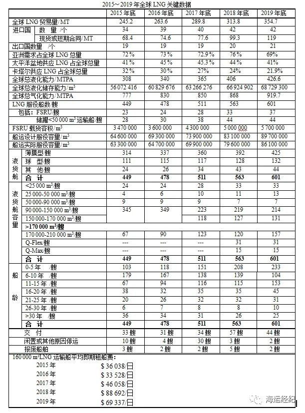 2019年全球LNG關鍵數據