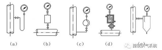 常用壓力表測量管線連接見(jiàn)下圖(a)~(e)。