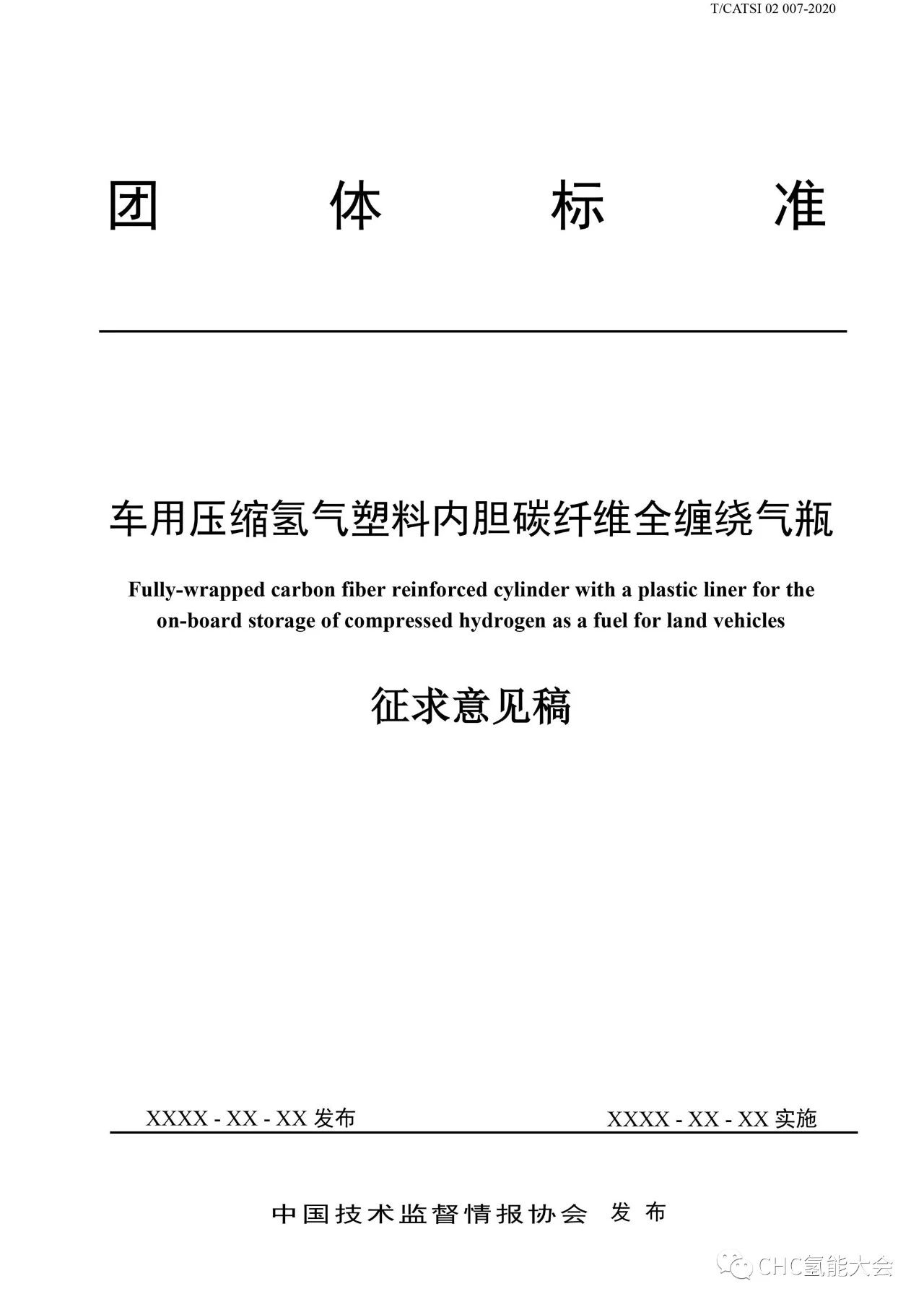 關於團體(tǐ)標準《車用壓縮氫氣塑料內膽碳纖維全纏繞氣瓶(征求(qiú)意見稿)》公開征求意見的通知