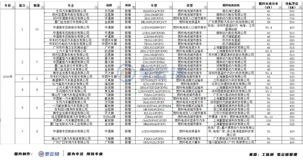 值得注意的是,在 2020 年 4 月 23 日,財政部等 4 部委(wěi)聯合發布了《關於調整完善新能源汽車補貼政策的(de)通知》;因此在 2020 年 5 月 19 日,工信部發布(bù)《新(xīn)能源汽車推廣(guǎng)應用推薦車(chē)型(xíng)目錄 ( 2020 年第 6 批 ) 》和《新能源汽車(chē)推廣應用(yòng)推薦車型目錄(lù) ( 2020 年第 7 批 ) 》推薦目錄當中,分別(bié)有 66 款(kuǎn)和(hé) 74 款燃料電池汽車車型再次上榜。