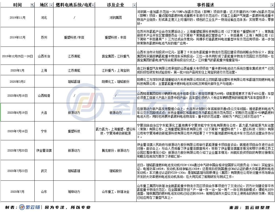 在節能減排的政策倒逼(bī)和成本逐步降低的背景下,國內氫能重卡在核心部件燃料電池方麵不斷取得新的進展,氫能重卡的商用將在2020年逐步打開新局麵。對比大巴、乘用車等其他類型燃料(liào)電池汽車,燃料電池重卡載重量往往高達數十噸,單次運輸裏程動輒數百甚至數千公裏,運行環境也更加複雜,在功率、穩定性、可靠性、壽命、係統匹配、動力響應等方麵提出(chū)了更高的要求,需要車企與燃料電池廠商共同(tóng)協作攻克各種(zhǒng)技術難題。另一方麵,由於重卡行駛裏程長(zhǎng),往往跨城跨省運輸,在加氫站基礎設(shè)施建設及加氫服務協調方(fāng)麵需要克服一係列(liè)的(de)難題(tí)。