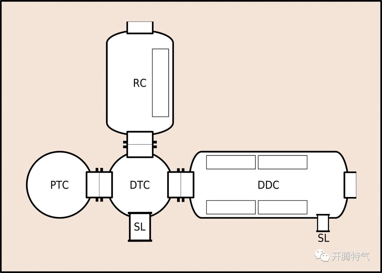 一個(gè)簡單的飽和係統的示意圖,其中顯示(shì)了人類占領的主(zhǔ)要壓力(lì)容器:DDC –客廳;DTC –傳送室;PTC –人員轉移室(鍾(zhōng)形)RC –再壓縮(suō)室;SL –供應鎖。為了到達海底,潛水員通過氣閘離開壓力室棲息地,然後進入潛水鍾(zhōng)。然後將潛水鍾下降到海底(或所需的工作深度),然後潛水員離開潛(qián)水鍾開始工作。潛水鍾上留有一名潛水員,以監視工作的潛水員。潛水員完成輪班後,他們會重新進入鍾形,然後將其懸掛回水麵,然後開始下一個輪班。與潛水相(xiàng)比,優點是(shì)可觀的(de),雖然隻有少數潛水員的潛水深度超過300m,但飽和(hé)潛水員通常在100m至500m的深度(dù)工作(zuò)。