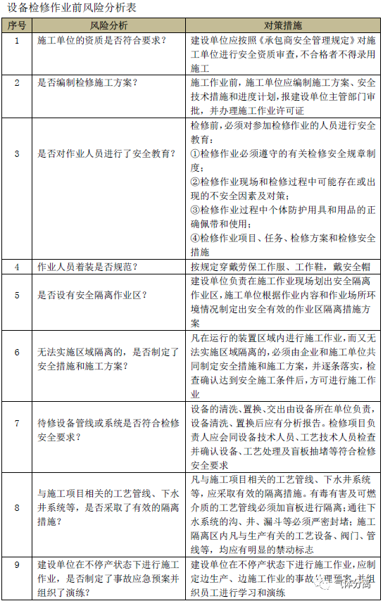 危險性作業這個詞,出自國家安監總局2012年8月(yuè)7日發布的《危險化學品企業事故隱患(huàn)排查治理實施導則》中。該《導則》4.1.6(2)規定:動火作(zuò)業、進入受限空間(jiān)作業(yè)、破土作業、臨時(shí)用電作業、高處作業、斷路作業、吊裝作業(yè)、設備檢(jiǎn)修作業和抽(chōu)堵盲板作業等為9種作業為危(wēi)險性作業。