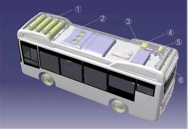 ①氫係統;②空調係統;③燃料電池發動機係統;④空氣過濾器;