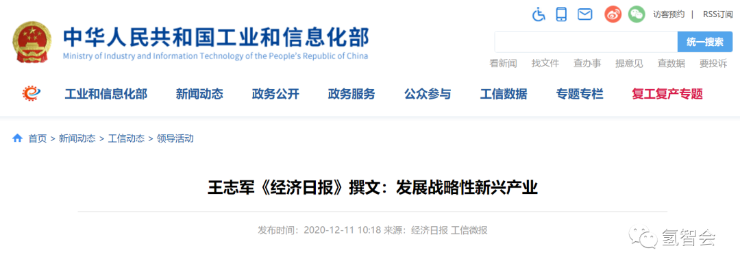 2020年12月11日(rì),工業和(hé)信息化部黨組成員、副部長王誌軍在《經濟日報》撰文《發展戰略(luè)性新興產業》。