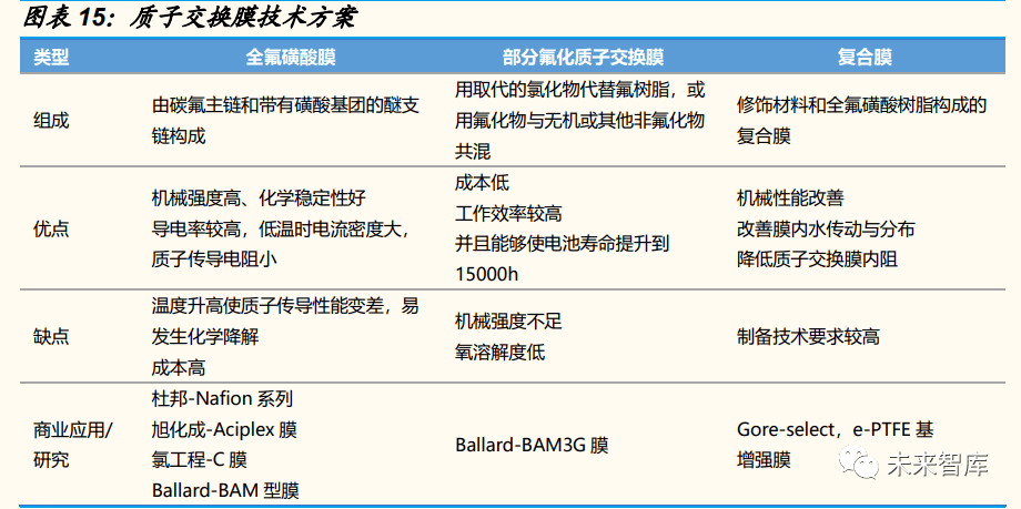  質(zhì)子交換膜:主(zhǔ)要(yào)參與者為海外企業。目前市(shì)麵上銷售的質(zhì)子交換膜主要 包括美國 Gore 公司(sī) SELECT 係列、Dupont 公司的 Nafion 係列、加拿大 Ballard 公司 BAM 膜等以及(jí)國內東嶽集團的全氟磺酸質子交換膜。