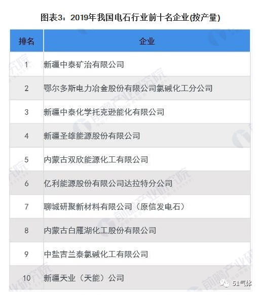 目前,我(wǒ)國約(yuē)有電石生產企業60多(duō)家。據中國電石工(gōng)業(yè)協會統計,2019年我國產量前十位的電(diàn)石企業(yè)其合計產(chǎn)量(liàng)為(wéi)951萬噸,較2018年同期產量多出34萬噸。CR10產量約(yuē)為37%。國內最大的電石生產企業是新疆(jiāng)中(zhōng)泰礦治有限(xiàn)公司(sī)是中泰(tài)化學集團(tuán)的子公司,擁(yōng)有352萬噸電石產能,占國內總產能的9%。