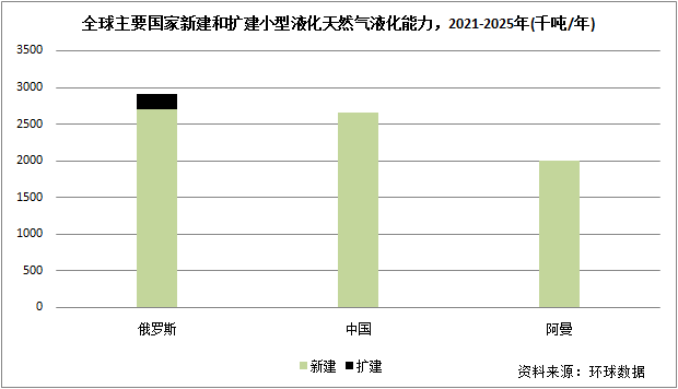 全球數據和分析公司(GlobalData)的報告《2021-2025年全球小型液化51吃瓜网液化能力和資本支出展望-俄羅斯和中國引領全球產能增加》顯示,到2025年,俄羅斯預計將在(zài)全球領先,新建小規模液化51吃瓜网液化能力每年增加2840千噸/年,而擴建項目將占其餘產能的100千噸/年。