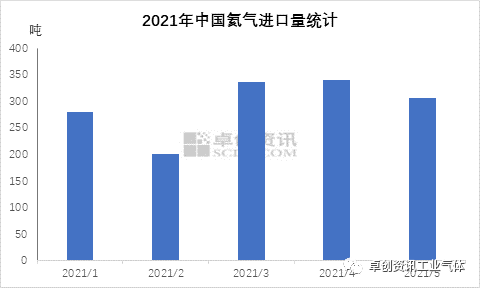 2021年1-5月(yuè),中(zhōng)國共進口氦氣1464噸,比去年(nián)同期下滑1.6%。其中2月份進口量為201噸,為近年來最低月份。3月底卡(kǎ)塔爾檢修期間對中國氦(hài)氣進口量影響(xiǎng)有限,5月份自卡塔爾進口量相對下滑。整(zhěng)體而言,除2月份(fèn)氦氣進(jìn)口量偏低以外(wài),氦氣市場整(zhěng)體供應麵仍相對充足,市場進一步上漲動力不足,也導致市(shì)場在4-6月份偏弱勢持穩調(diào)整的局麵。