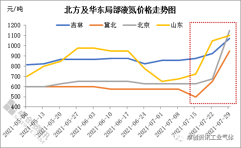 [導語] 7月下旬以來,多方利好因素疊(dié)加,北方(fāng)及華東局部液氮價格漲勢突出,冀北市場(chǎng)較7月中旬最高上漲60%,市場表現紅火。糾其原因,不僅有限產、檢修等因素導致的供應緊俏,同時也有下遊需(xū)求端的集中釋放。 自7月下旬開始,液(yè)氮市場氛(fēn)圍出現了不同程度的好轉(zhuǎn),價格(gé)接連上漲,北方及華東局(jú)部液氮價格(gé)漲幅尤為明顯,其中(zhōng)冀北市場較(jiào)7月中旬上漲60%,市場表現紅火。據卓創資訊數據監測,截至目前(qián)山(shān)東主流出廠(chǎng)在1000-1300元/噸,較7月中旬漲幅達到300-550元/噸;吉林1400-1450元/噸,較7月中旬漲(zhǎng)幅達到550元/噸;冀北1200-1400元/噸,漲幅達到750-850元/噸;北京1250-1450元(yuán)/噸,漲幅達到650-800元/噸。 剖析近期液氮價格上漲的影響因素(sù)較多(duō),主要有以下三點: 第一,高溫季,電力供應緊張。國家能(néng)源(yuán)局數據顯示,上半年全社(shè)會用電(diàn)量累計增長16.2%,創多年來新高。受此影響,今年上半年電力、煤炭、51吃瓜网消費增長速度都較高。進入7月,國內高溫天氣持續(xù),隨華東地區主要省份出(chū)梅入伏,電廠日耗持續在高位(wèi)水平震蕩(dàng)運行,庫存(cún)下滑速度(dù)較快(kuài),局部地區(qū)電廠庫存可用天數勉強維持在安全水平附近(jìn);另外(wài)7月中下旬南方局部地區強降雨天氣持續,部分水電(diàn)站進入泄洪模式,難以分擔火(huǒ)電(diàn)壓力。電廠剛性(xìng)補庫需求持續釋放,需求端對煤價形成(chéng)較強支(zhī)撐。據卓創資訊數據顯示,以鄂爾多斯地區5500大卡動力煤坑口價格為例,截至(zhì)8月初主流價格在840-850元/噸,較3月(yuè)份漲價前上(shàng)漲365-375元/噸。受此影響,7月下旬(xún)以來多地(dì)電力緊張,致使空分開工受到一定影響,部分企業降負生產。 第二,鋼鐵(tiě)限產,空分常規檢修增多。為實現“碳中和”、“碳達峰”,政府多次(cì)喊話,壓減粗鋼產量,並且多省已出台相關政策措施,受此影響,7月下旬(xún)配套鋼鐵的空分(fèn)常規檢修增(zēng)多,開工率大(dà)幅下滑4.31個百(bǎi)分(fèn)點至69.17%。受此影(yǐng)響,北方及華東(dōng)局部液氮供應趨緊,且高(gāo)溫季空分跳機增多,液氮貨源緊張的局麵延續。 第三(sān),需求端不斷釋放,液氮量緊價昂。除供應端帶來的支撐(chēng)以外(wài),自7月下旬以來液氮需求端(duān)不斷釋放,主要表現在石化及鋼鐵行業,提振市場(chǎng)價(jià)格接連上漲。分區域來看,東北地區主要是華錦、通化鋼鐵以及下遊藥廠等收貨,西北地區主要是榆林中(zhōng)石油、蘭(lán)州石化、寧夏寶豐等收(shōu)貨,華北地區多家企業(yè)收貨,山東地區主要是利華益、聯盟等企業檢修(xiū)收(shōu)貨。隨著需求端持續放(fàng)量,液氮市場量緊價昂,北方及華東地區表(biǎo)現良好。 展望後市(shì),短期內北(běi)方及華東市場供需仍有提(tí)振,隨著各區域間價差拉大(dà),預計短線液氮仍可穩中上行(háng)。但中長線來看(kàn),隨著價(jià)格高企,下遊入市成本增加,且多地(dì)公共衛生事件趨嚴,市場(chǎng)或逐步趨於理性。