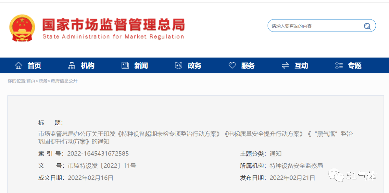 《特種設備超期(qī)未檢專項整治行動方案》《電梯質量安全(quán)提升行動(dòng)方案》《“黑氣瓶(píng)”整治鞏固提升(shēng)行(háng)動方案》的通知