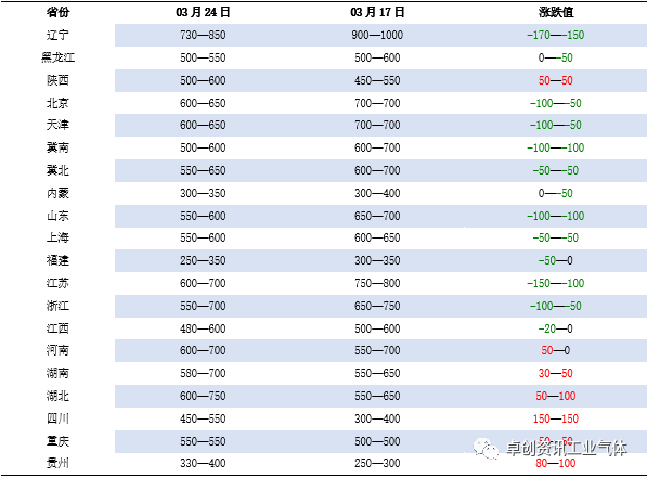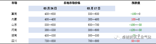 3月第4周液氧市場漲跌互現。多地市場管控,液氧需求(qiú)縮減,采購積極性下滑,東北、華北和華東(dōng)地區出貨承壓(yā),價格弱勢下挫。華中、西北和(hé)西南(nán)地區氛圍好轉(zhuǎn),局部收貨支撐下,價格震蕩上行。據卓(zhuó)創資訊(xùn)數據監測,截至本周四(sì)中國液氧市場均價(jià)541.17元/噸,環比(bǐ)上周均價降(jiàng)2.49%,同比降23.37%。