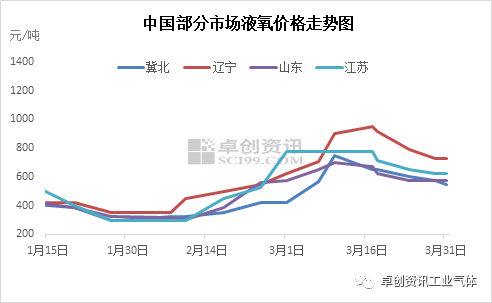 1.一季度液氧均價同比降41.26%