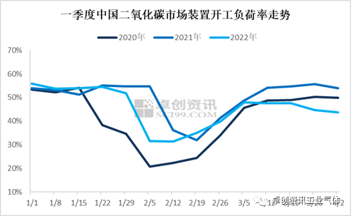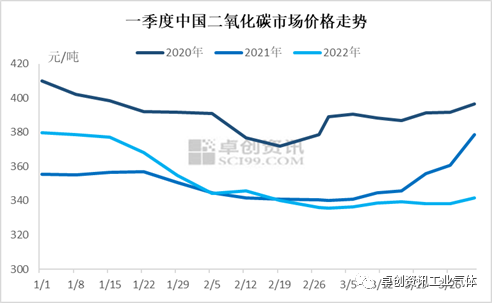 [導語]2022年一季(jì)度中(zhōng)國二氧化碳市場表現不佳,一季度中國(guó)市場均價(jià)349.5元/噸(dūn),較去年同期下降10%,一季度裝置開工率為45.64%,較去年同期下(xià)降4.33%,市場氛圍整體偏弱(ruò)運行。