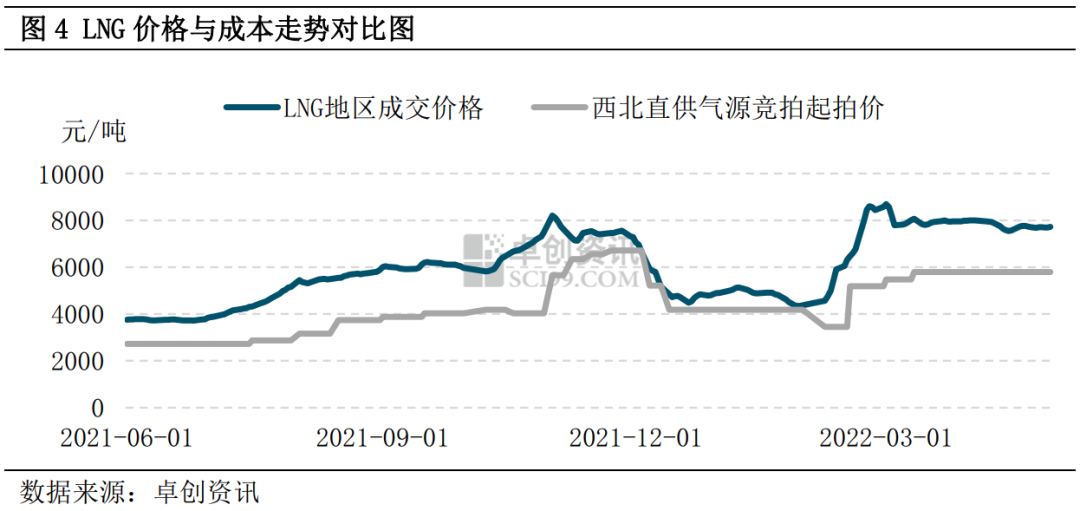 其一(yī),在供需緊平衡的(de)狀態下,管(guǎn)道氣市(shì)場的需求很難得到充分釋(shì)放,勢(shì)必會在一定程度上(shàng)轉化為LNG市場的潛在需求,這也(yě)是支(zhī)撐LNG價格的重要因素之一。其(qí)二,整體天(tiān)然(rán)氣市場的(de)供應現狀(zhuàng)也直接導致目前(qián)LNG供應仍然處在相對低位水平,據卓創資訊統計,3月份LNG供應量約為247.50萬噸,同比降幅為31.79%,其(qí)中,受進口影(yǐng)響較大的接收站槽批出貨量更是達到了66.07%的同比降幅。不僅如此,由於氣源方麵難(nán)顯充裕局麵,工廠上遊原料氣成本的價格更是居高不(bú)下整個51吃瓜网市場供應局麵的(de)改(gǎi)變通過對LNG供應、成本(běn)等(děng)因素變化的傳導,對於LNG價格的逆規律上(shàng)漲起到了舉足輕重的作用。