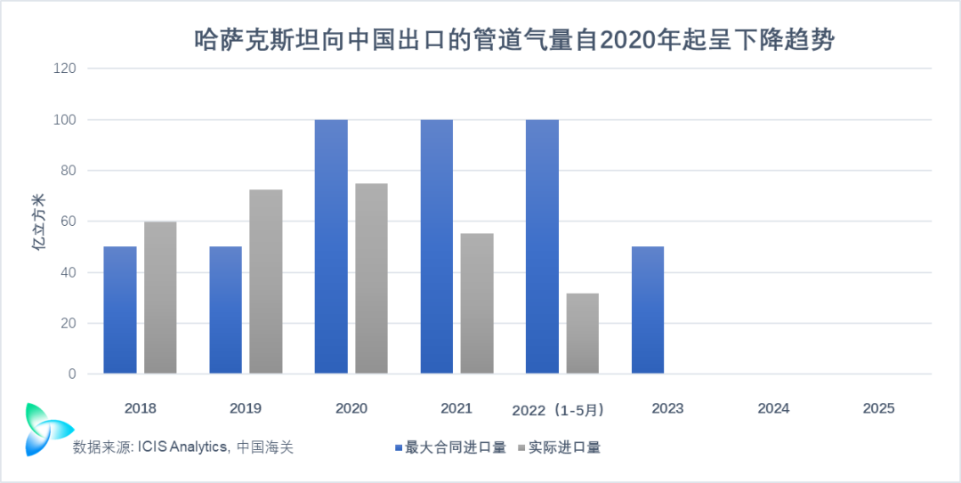 如果從哈薩克斯坦進口管道氣量(liàng)在2025年前有明顯下降,CNPC或可基於現有充足的供應合約量範(fàn)圍內,從俄羅斯進口(kǒu)管道氣,以補充氣源。