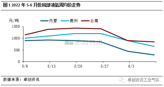根據卓(zhuó)創資訊數據監測,進入6月以來,受需求下降、市場供需矛盾加劇影響,內蒙、貴州、雲南等地液氬價格下滑明顯,截至6月10日,內蒙古(gǔ)地區主(zhǔ)流出廠價(jià)降至280-300元/噸,較5月底下跌(diē)65.9%;雲南地區主流出廠降至800-900元/噸,較5月底下跌39.2%,貴州地區因資源主(zhǔ)要流入雲南,受雲南(nán)下跌影響,主流出廠亦降至600-700元/噸,較5月底(dǐ)下跌45.8%。