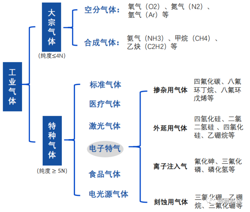 工業氣體指用於工業(yè)生產(chǎn)製造的氣體;根據應(yīng)用領域的不同,可分為大宗氣體和特種(zhǒng)氣體。