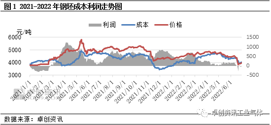 冶金作為液氧(yǎng)下遊消費(fèi)最重要行業(yè),鋼(gāng)鐵行情變化直接(jiē)反應液氧需求情況。上半年鋼(gāng)坯價格走勢先揚後抑(yì)。具體來看,1月,受原料價格高企支撐,鋼坯成本走高,鋼企挺價意願增強,同時鋼坯供弱需強,供應缺口明顯,利好鋼坯價格。春節以後雖然需求表現一般,但受(shòu)國際賽事影響,高爐(lú)多執行限產,鋼坯外賣投放量減少,對價格較強支撐。進入3月(yuè)以後,隨(suí)著終端需求複蘇,成品需求有好轉,調(diào)坯企業成品仍有利潤(rùn),中旬開工率高(gāo),對鋼坯的需求釋放明顯,坯料需求(qiú)缺(quē)口擴(kuò)大,帶動鋼坯價格走強(qiáng),3月底(dǐ)鋼坯收(shōu)盤均價為4905元/噸,月環比(bǐ)漲6.25%。4月(yuè)以後,受運輸限製,終端(duān)需求釋放較弱,主導區(qū)域唐山調坯企業有效生產天數(shù)減少,利潤少,整體對鋼坯的需求較弱,鋼坯寬幅下(xià)行。至6下旬,鋼坯價格(gé)降(jiàng)至3830元/噸(dūn),為年(nián)內價格(gé)低點,本月鋼坯價格降幅環比(bǐ)擴大(dà)。