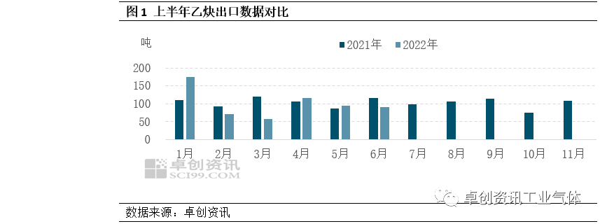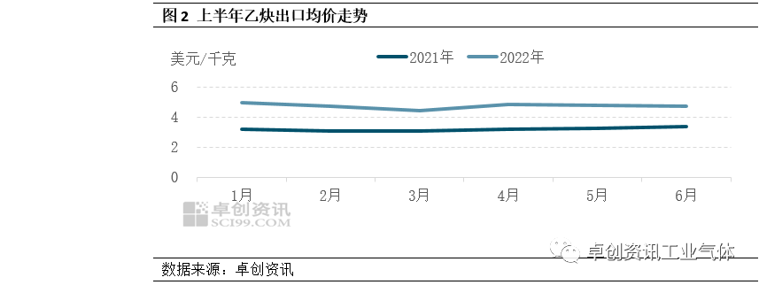 1.上半年中國乙炔出口量(liàng)下(xià)降 出(chū)口單價上漲