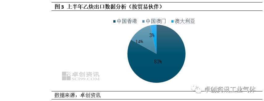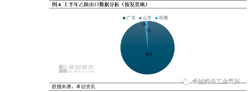 3.上半(bàn)年乙(yǐ)炔出口量主要來自於廣東省