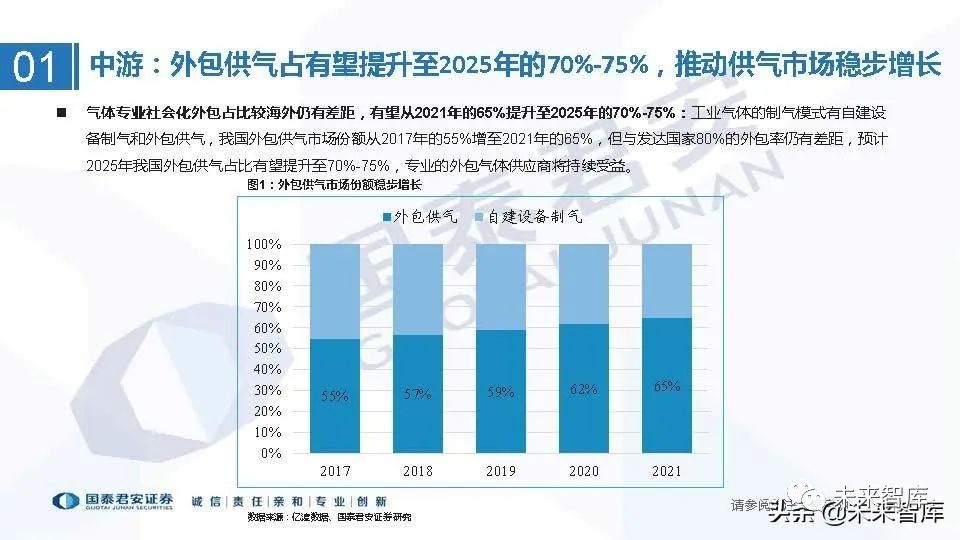 中遊:外包供氣占有望提升(shēng)至(zhì)2025年的70%-75%,推動供(gòng)氣市場(chǎng)穩步增長