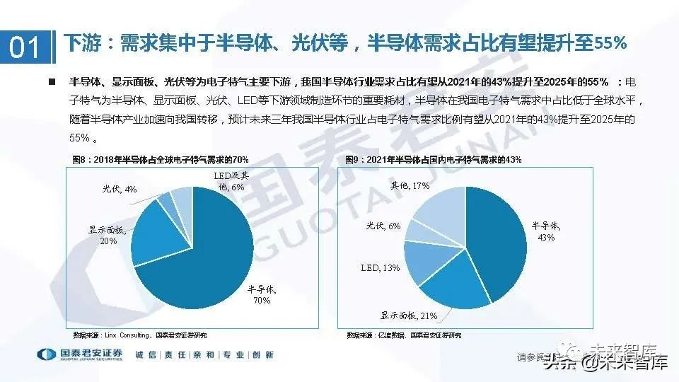 下遊:需求集中於半導體、光伏(fú)等,半導體需求占比有望(wàng)提升至55%