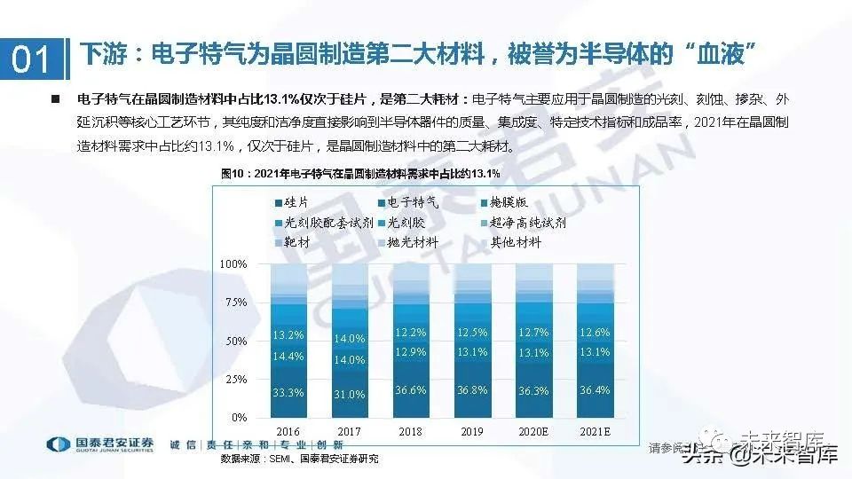 下遊:電子特氣為晶圓製(zhì)造(zào)第二大材(cái)料,被譽為半導體的(de)“血液”