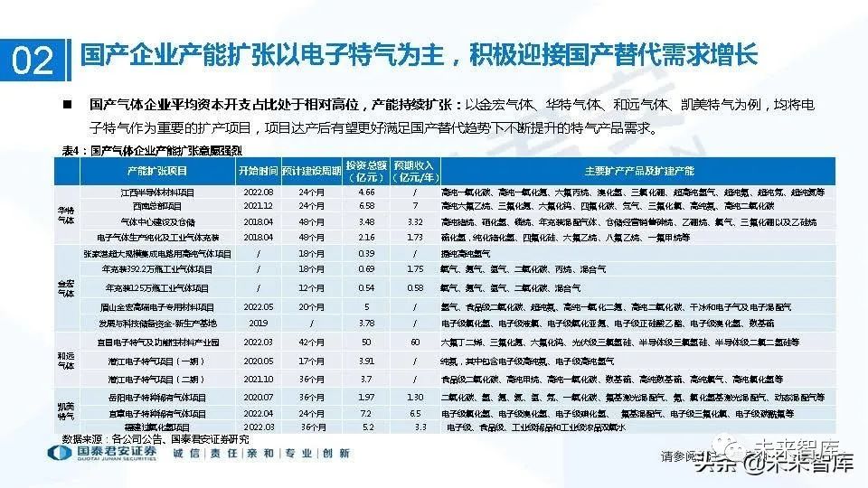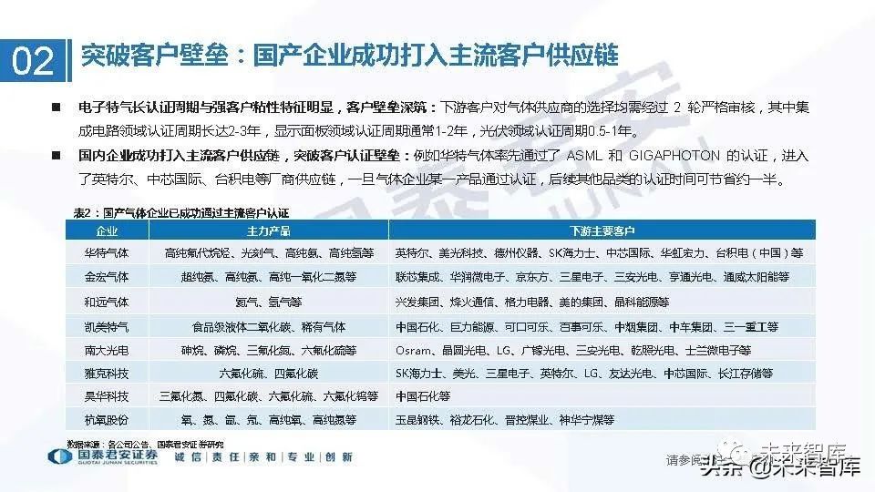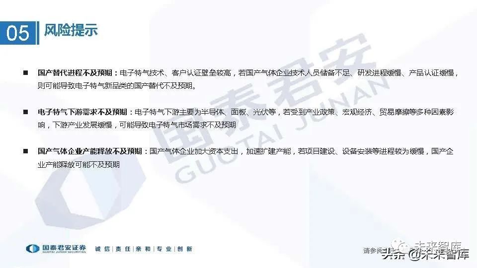 供應(yīng)鏈安全受重視(shì),審核認證加快替代加 速:國內下遊廠商對於電(diàn)子特氣供應鏈安 全愈(yù)加重(chóng)視,預計(jì)對國產電子特氣的審核 認證方麵將更加快速,電子特氣的國(guó)產替(tì) 代進度將進一步加(jiā)快。
