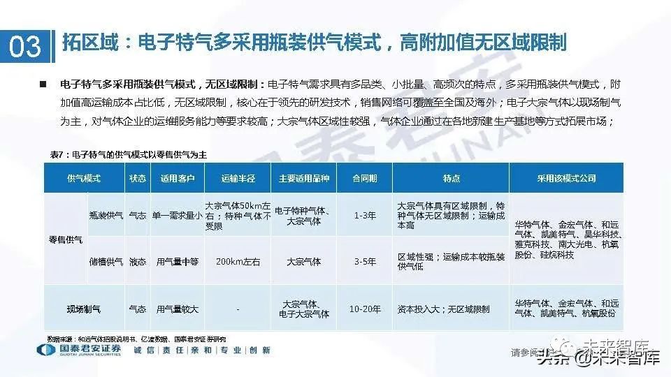 拓區(qū)域:電子特氣多(duō)采用瓶裝供氣模式,高附加值(zhí)無區域限製(zhì)