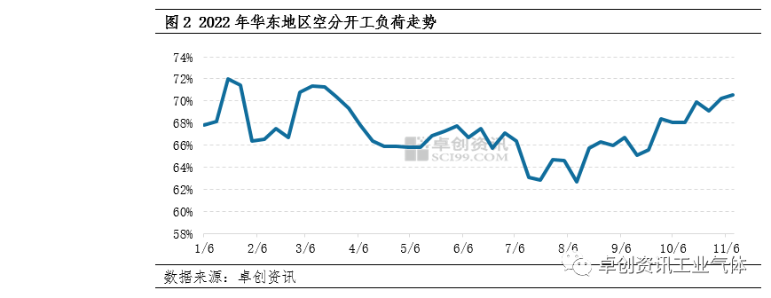 2.華東地區空分(fèn)開工負荷走勢波動頻(pín)繁