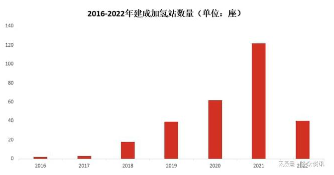 從建站年份來看,2021年國內建成(chéng)加氫站122座,為(wéi)曆(lì)年來建站數量最多的年份,主要原因是受到去年的中石化發布“百站計劃”、示範(fàn)城市群政(zhèng)策即將(jiāng)落(luò)地、北京冬奧會氫能應用等利好因素影響,建站速度提升效果明顯。2022年開年至11月,國內建成加氫(qīng)站數量為40座(zuò),受公共安全事件影響,建站(zhàn)速(sù)度較去年明顯放緩,預計2022年建站總數超越2021年的(de)可能性(xìng)不大。
