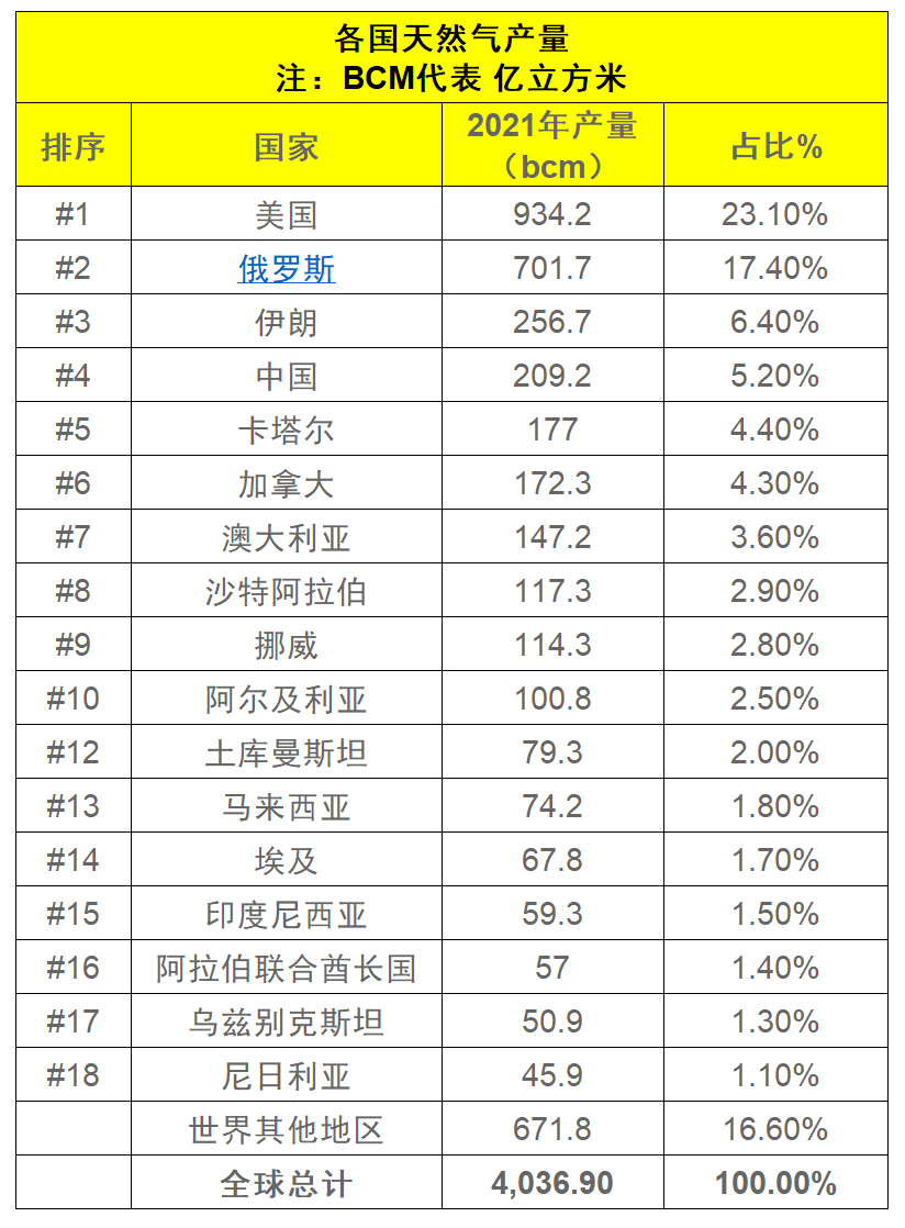 一張圖看懂 | 全球哪些國(guó)家生產的天然(rán)氣最多?