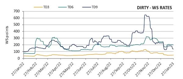 船舶經紀商Intermodal在最新周報中表示:“在LNG現貨價格自12月下旬走下坡路以來,LNG運輸船期租價格也從堅挺位置小幅回(huí)撤。盡管需求前景樂觀,船東仍需要確定(dìng)的數字,尤其是對(duì)於2023年下半年的需求。”