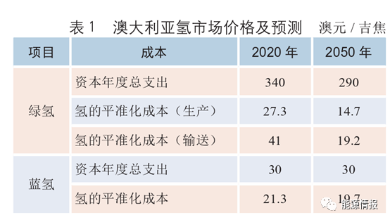 GHD等行業研(yán)究表明,大(dà)規模情況下綠氫的平準化價格(LCOH)主(zhǔ)要由(yóu)電價主導。由於電解槽效(xiào)率提高和電力(lì)成(chéng)本降(jiàng)低,氫成(chéng)本將隨著時間的推移而降低。澳大(dà)利亞(yà)氫市場價格(gé)及預測詳見表1。