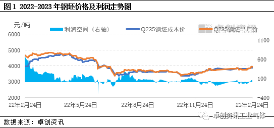 近期鋼材(cái)價格積極上漲,截至(zhì)2月23日,國內鋼坯市場收盤均價為4050元/噸,較上周(zhōu)同(tóng)期價格漲122元/噸,環比漲(zhǎng)幅為3.11%。受宏觀預期向好,鋼材市場整體表現積極,疊加期貨盤麵走強,市場交投活躍度提升,支撐鋼材上漲(zhǎng)。