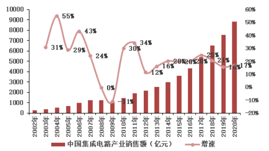 近五年中國(guó)集(jí)成電路產業銷售額複合增速達20%
