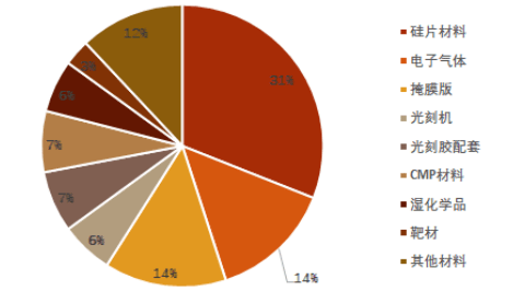 根據北美半導(dǎo)體產(chǎn)業協會(huì)(SIA),在各芯片製造材料中,電子氣體占比達14%,是(shì)僅次(cì)於矽片材料之(zhī)外的第二大半導體(tǐ)材料。矽片材料、電子(zǐ)氣體、掩模(mó)板、光刻膠、光刻膠(jiāo)配套、CMP材料、濕(shī)化(huà)學品、靶材、其他材(cái)料占比分別為31%、14%、14%、6%、7%、7%、6%、3%、12%。